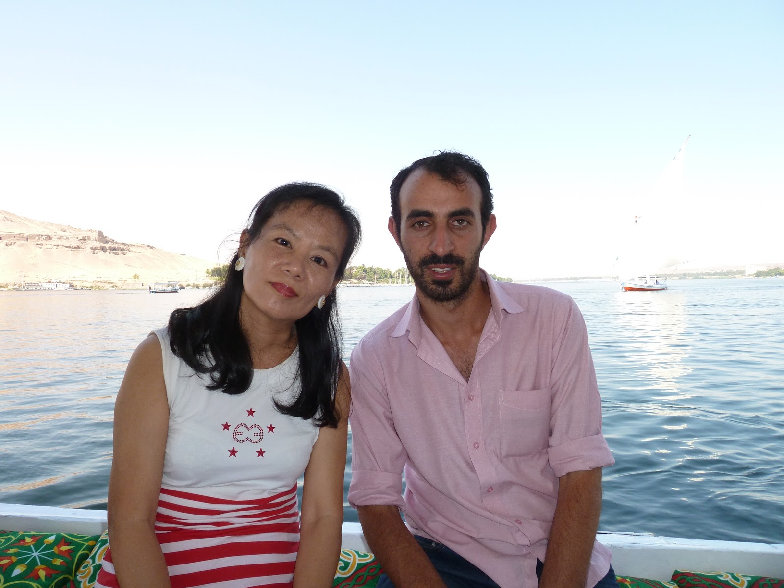 尼羅河在亞斯文到路克索之間河面寬廣平靜,利於航行,亞斯文水濱路碼頭,河岸大塊的花崗岩,遊輪雲集在此等待啟航。