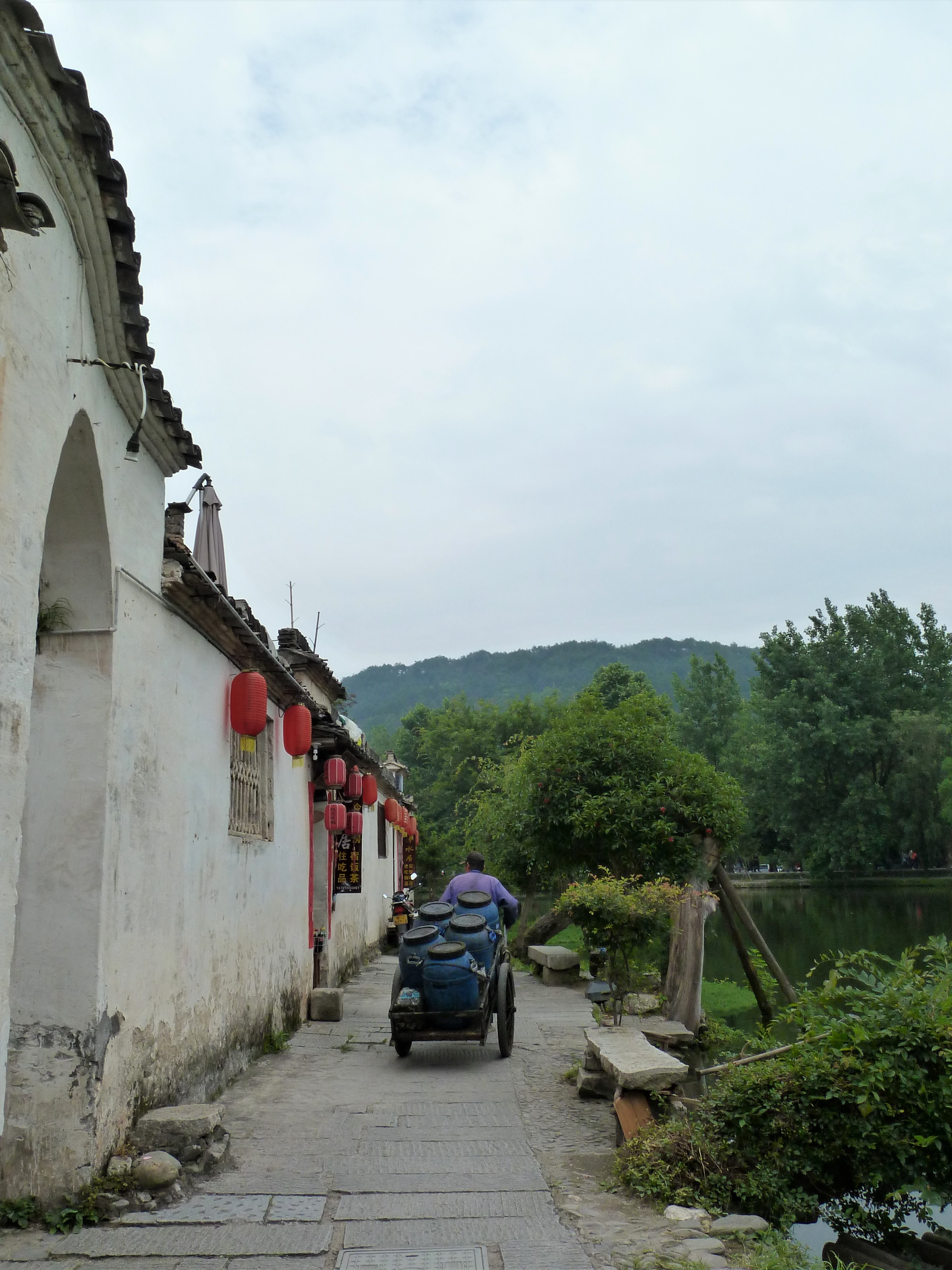 宏村人的生活,伴著碧波蕩漾的月沼和南湖,以月沼為中心,住戶祠堂環繞周邊,經過家家門前,再注入南湖。