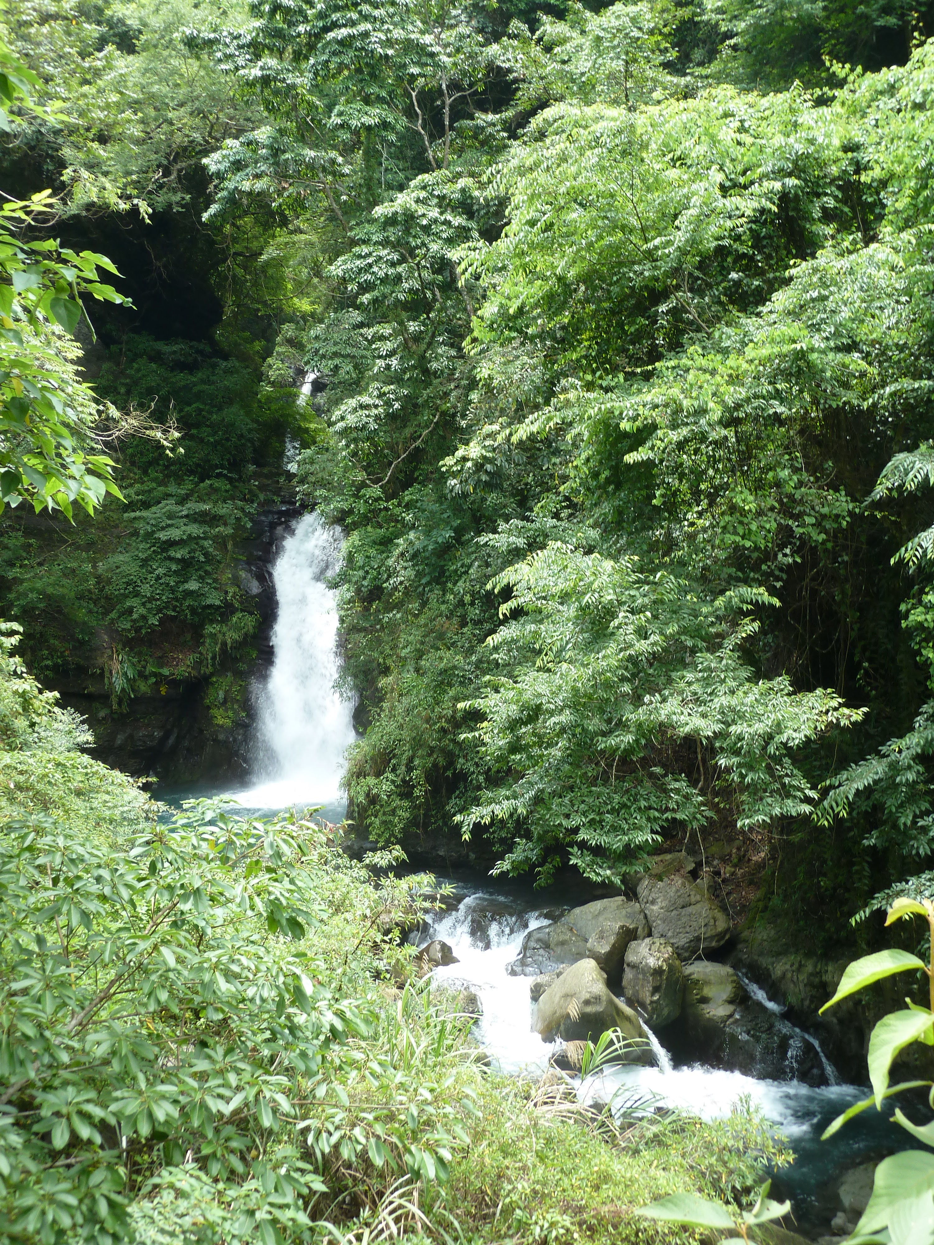 奔騰的瀑布水氣山上竄流而來,芬多精健行,和平吊橋回程。
