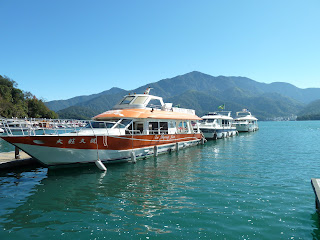 水社碼頭是遊湖起點,碼頭邊有多艘遊艇及手划小船。